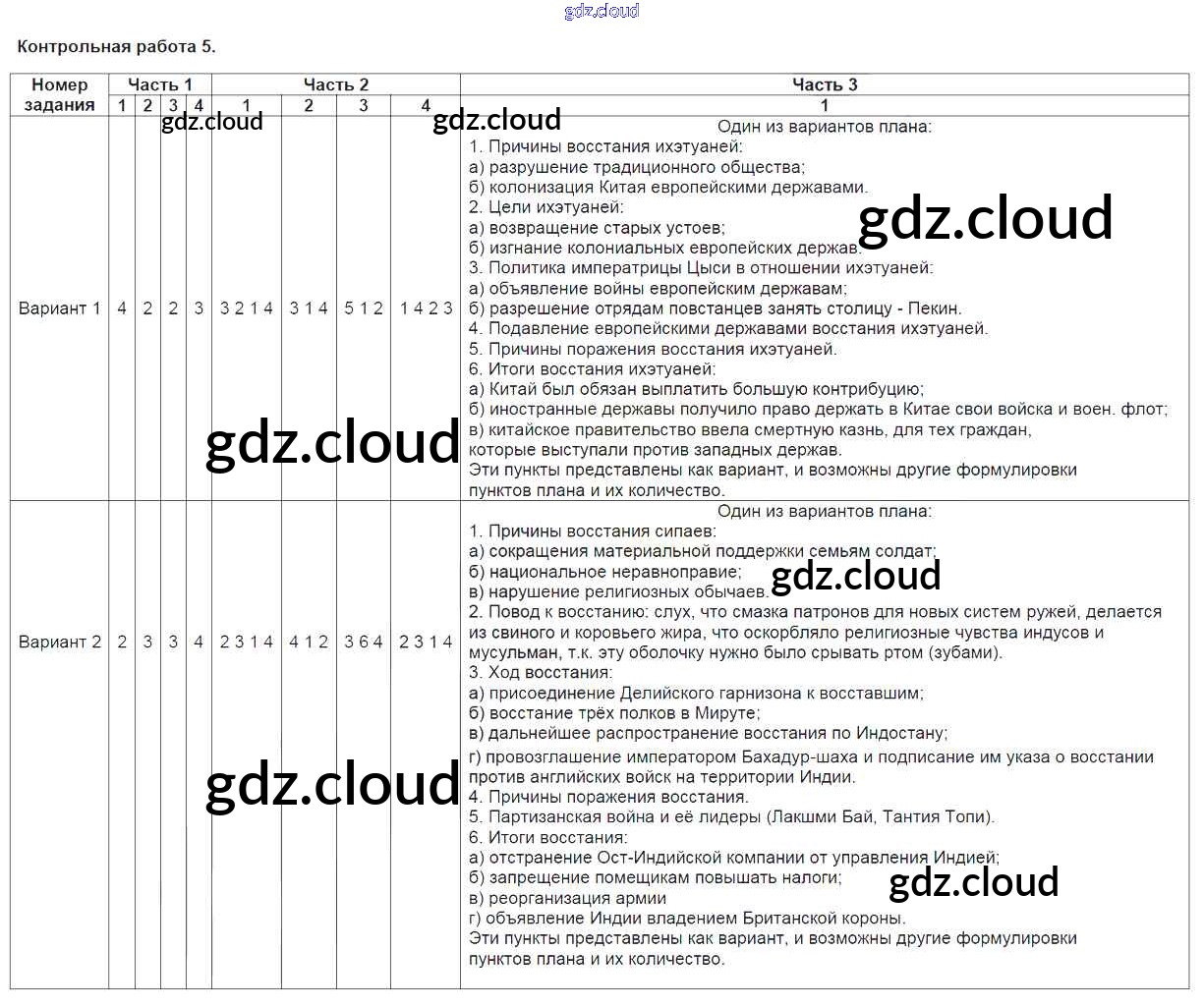 Ответ на задание 5 Проверочные и контрольные работы История за 8 (восьмой) класс Баранов УМК 2018