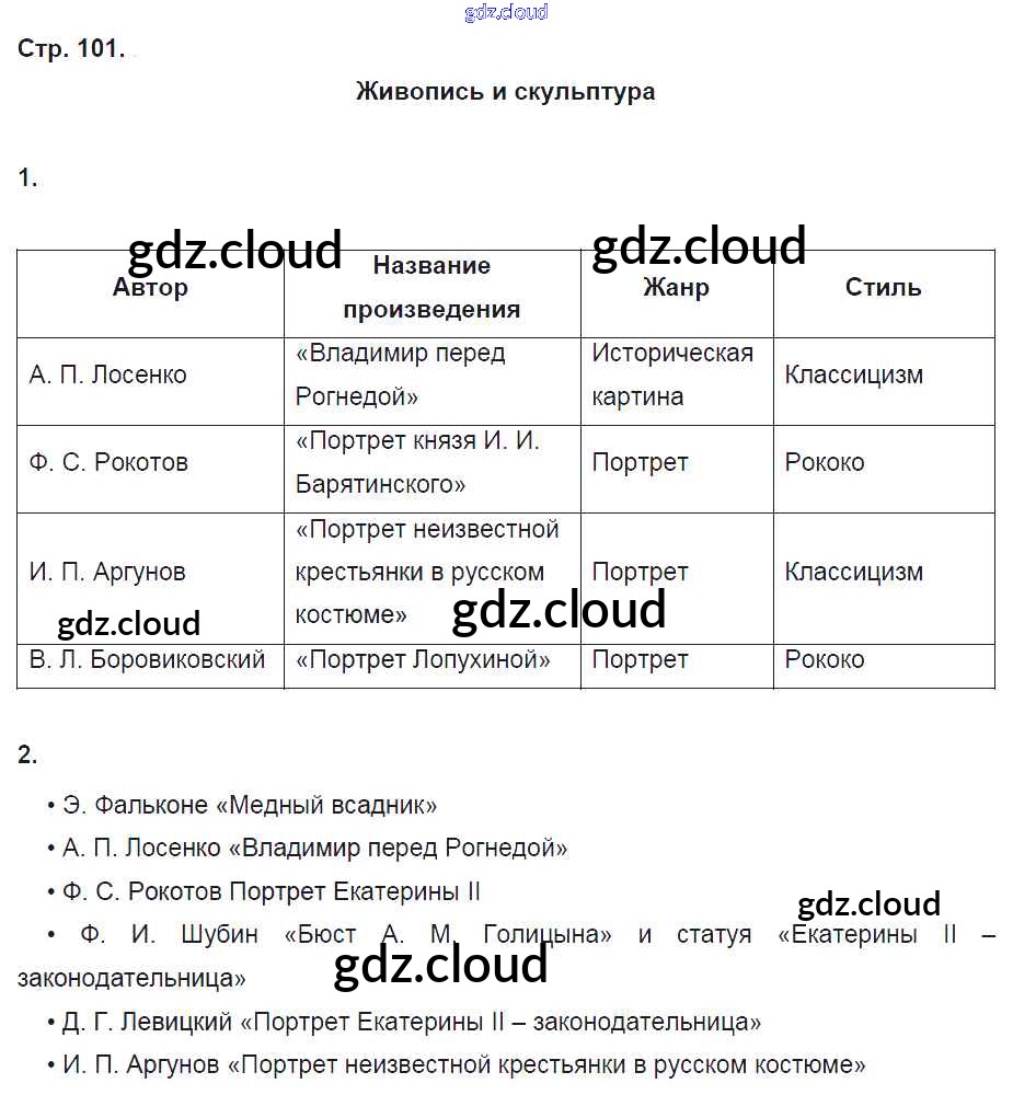 Ответ на задание 101 Рабочая тетрадь История за 8 (восьмой) класс Артасов, Данилов, Косулина, Соколова УМК 2016 ФГОС онлайн и без номера телефона.