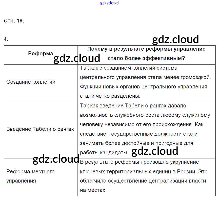 Ответ на задание 19 Рабочая тетрадь История за 8 (восьмой) класс Артасов, Данилов, Косулина, Соколова УМК 2016 ФГОС онлайн и без номера телефона.
