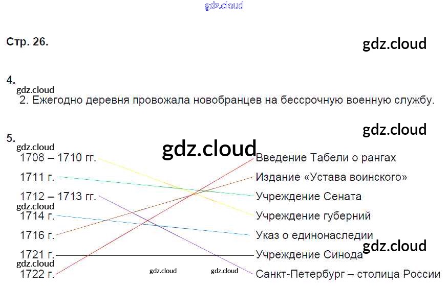 Ответ на задание 26 Рабочая тетрадь История за 8 (восьмой) класс Артасов, Данилов, Косулина, Соколова УМК 2016 ФГОС онлайн и без номера телефона.