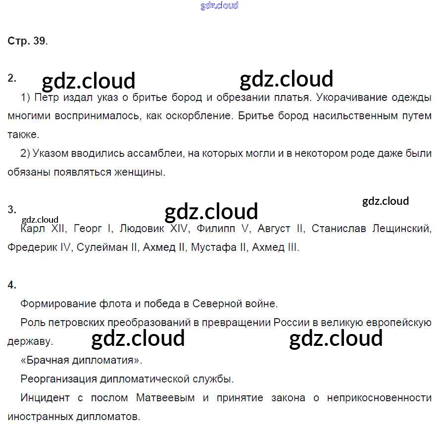 Ответ на задание 39 Рабочая тетрадь История за 8 (восьмой) класс Артасов, Данилов, Косулина, Соколова УМК 2016 ФГОС онлайн и без номера телефона.