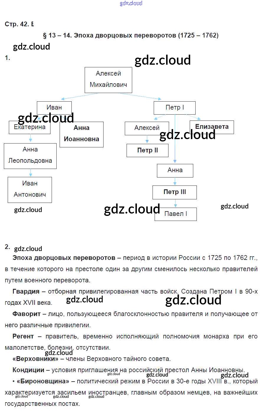 Ответ на задание 42 Рабочая тетрадь История за 8 (восьмой) класс Артасов, Данилов, Косулина, Соколова УМК 2016 ФГОС онлайн и без номера телефона.