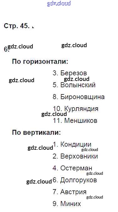 Ответ на задание 45 Рабочая тетрадь История за 8 (восьмой) класс Артасов, Данилов, Косулина, Соколова УМК 2016 ФГОС онлайн и без номера телефона.