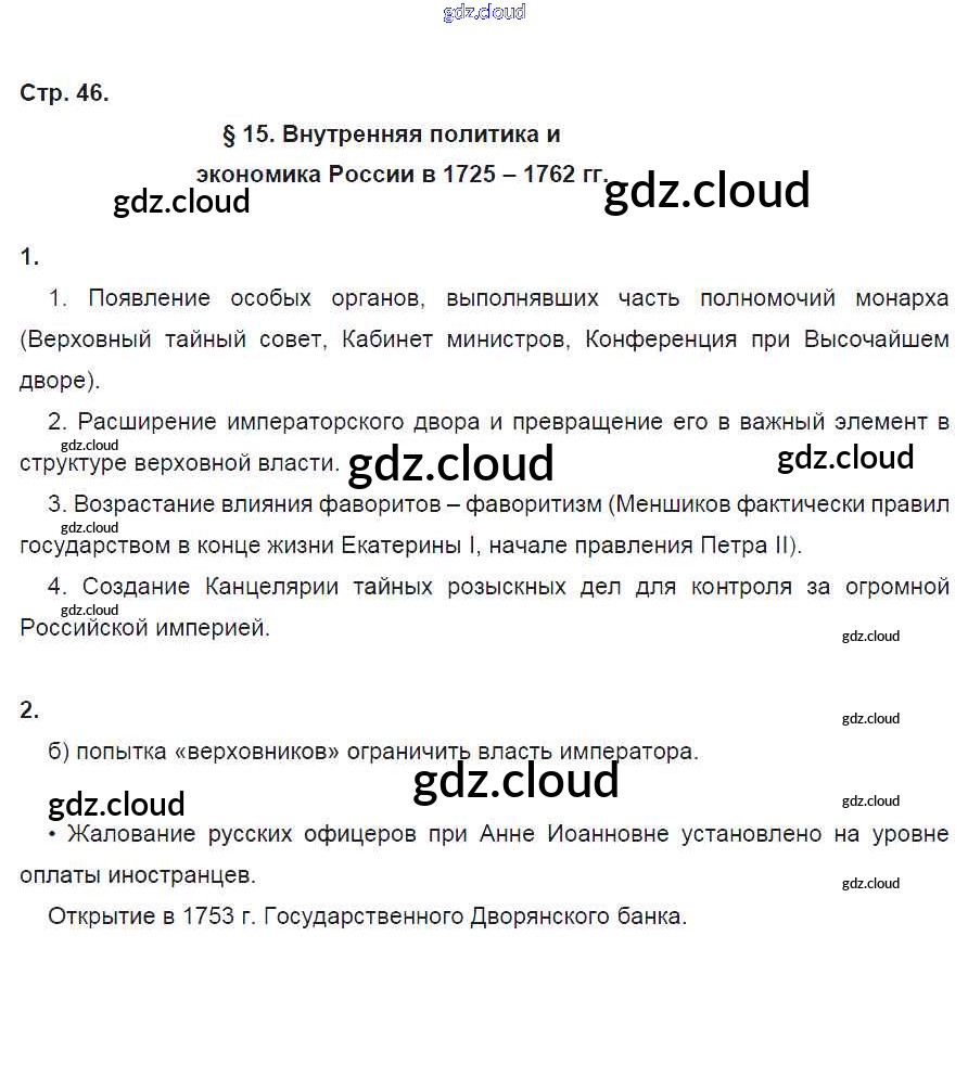 Ответ на задание 46 Рабочая тетрадь История за 8 (восьмой) класс Артасов, Данилов, Косулина, Соколова УМК 2016 ФГОС онлайн и без номера телефона.
