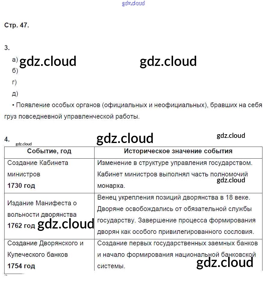Ответ на задание 47 Рабочая тетрадь История за 8 (восьмой) класс Артасов, Данилов, Косулина, Соколова УМК 2016 ФГОС онлайн и без номера телефона.