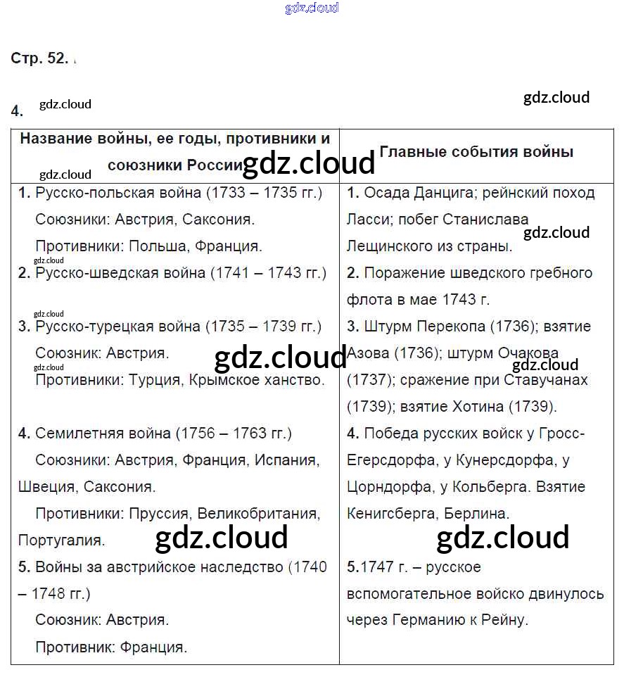 Ответ на задание 52 Рабочая тетрадь История за 8 (восьмой) класс Артасов, Данилов, Косулина, Соколова УМК 2016 ФГОС онлайн и без номера телефона.