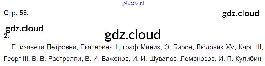 Ответ на задание 58 Рабочая тетрадь История за 8 (восьмой) класс Артасов, Данилов, Косулина, Соколова УМК 2016 ФГОС онлайн и без номера телефона.