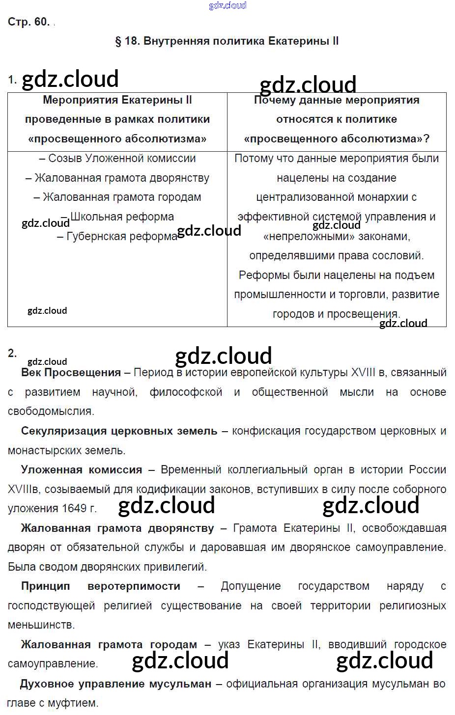 Ответ на задание 60 Рабочая тетрадь История за 8 (восьмой) класс Артасов, Данилов, Косулина, Соколова УМК 2016 ФГОС онлайн и без номера телефона.