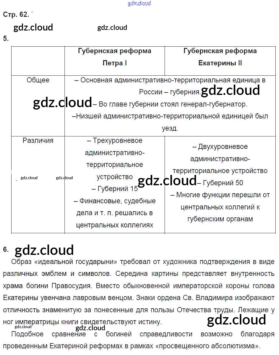 Ответ на задание 62 Рабочая тетрадь История за 8 (восьмой) класс Артасов, Данилов, Косулина, Соколова УМК 2016 ФГОС онлайн и без номера телефона.