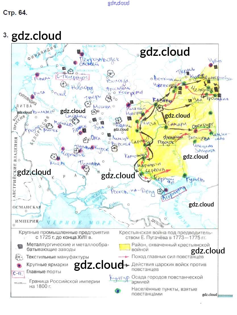 Ответ на задание 64 Рабочая тетрадь История за 8 (восьмой) класс Артасов, Данилов, Косулина, Соколова УМК 2016 ФГОС онлайн и без номера телефона.