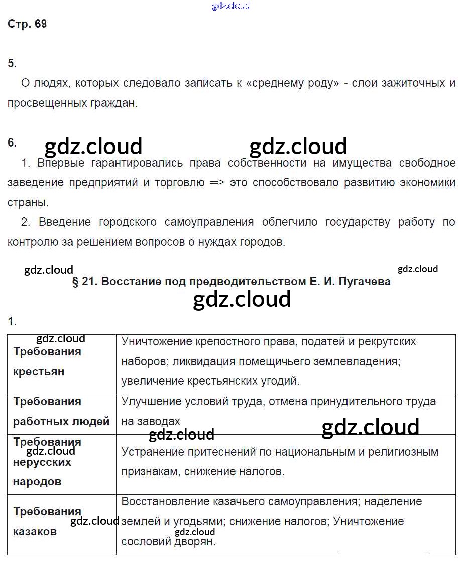 Ответ на задание 69 Рабочая тетрадь История за 8 (восьмой) класс Артасов, Данилов, Косулина, Соколова УМК 2016 ФГОС онлайн и без номера телефона.