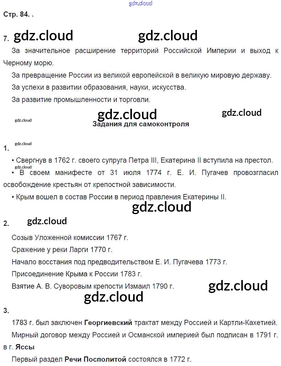 Ответ на задание 84 Рабочая тетрадь История за 8 (восьмой) класс Артасов, Данилов, Косулина, Соколова УМК 2016 ФГОС онлайн и без номера телефона.
