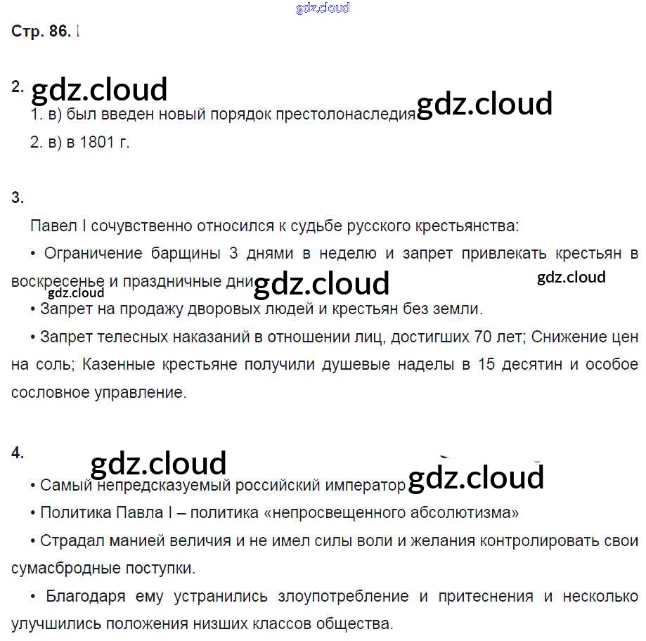 Ответ на задание 86 Рабочая тетрадь История за 8 (восьмой) класс Артасов, Данилов, Косулина, Соколова УМК 2016 ФГОС онлайн и без номера телефона.