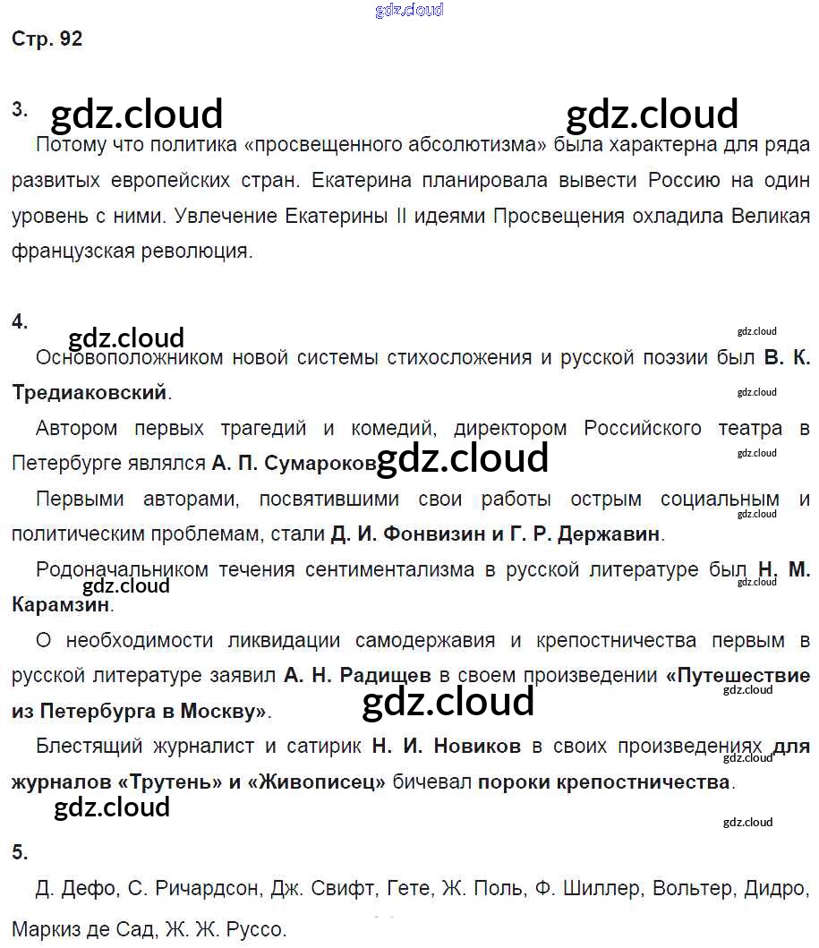 Ответ на задание 92 Рабочая тетрадь История за 8 (восьмой) класс Артасов, Данилов, Косулина, Соколова УМК 2016 ФГОС онлайн и без номера телефона.