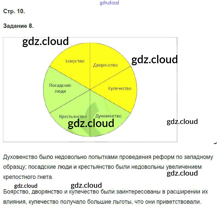 Ответ на задание стр.10 Рабочая тетрадь История за 8 (восьмой) класс Чернова УМК 2017 Часть 1, 2 ФГОС онлайн и без номера телефона.