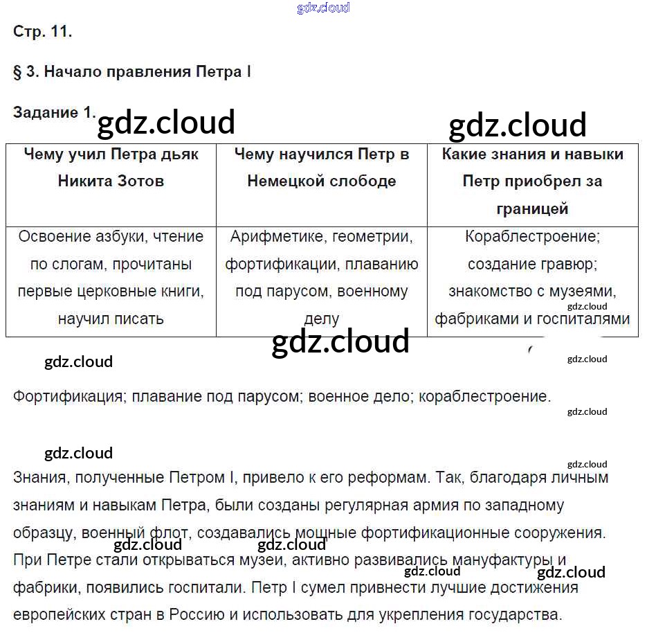 Ответ на задание стр.11 Рабочая тетрадь История за 8 (восьмой) класс Чернова УМК 2017 Часть 1, 2 ФГОС онлайн и без номера телефона.