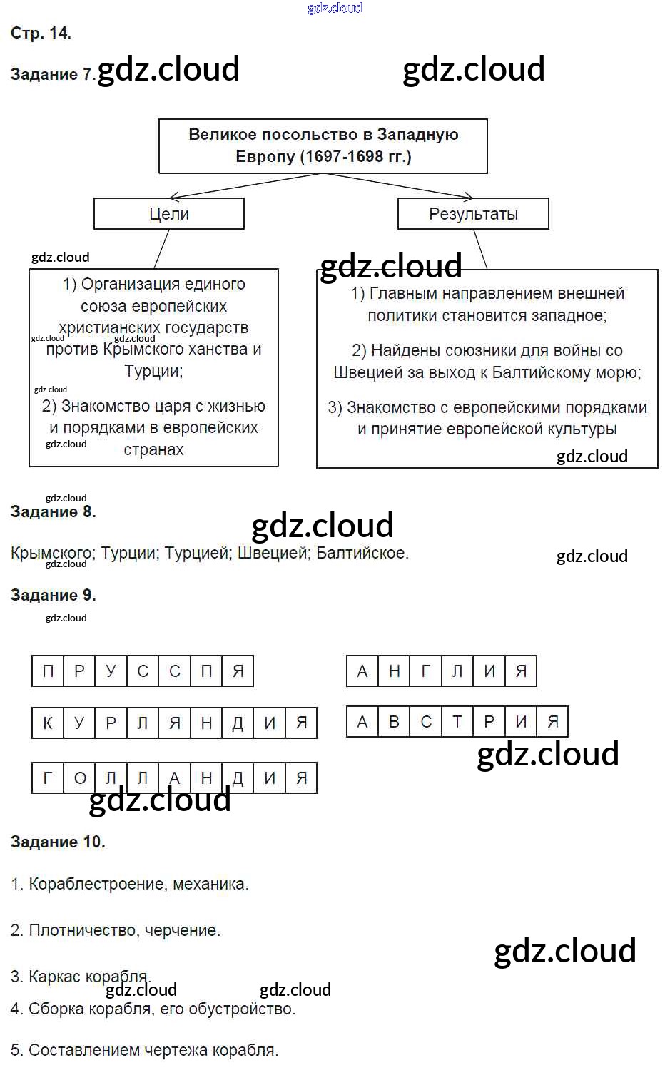 Ответ на задание стр.14 Рабочая тетрадь История за 8 (восьмой) класс Чернова УМК 2017 Часть 1, 2 ФГОС онлайн и без номера телефона.