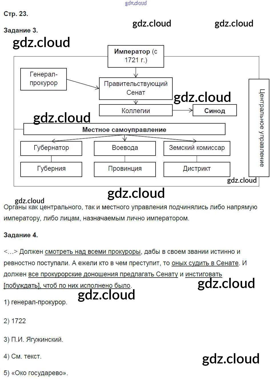 Ответ на задание стр.23 Рабочая тетрадь История за 8 (восьмой) класс Чернова УМК 2017 Часть 1, 2 ФГОС онлайн и без номера телефона.