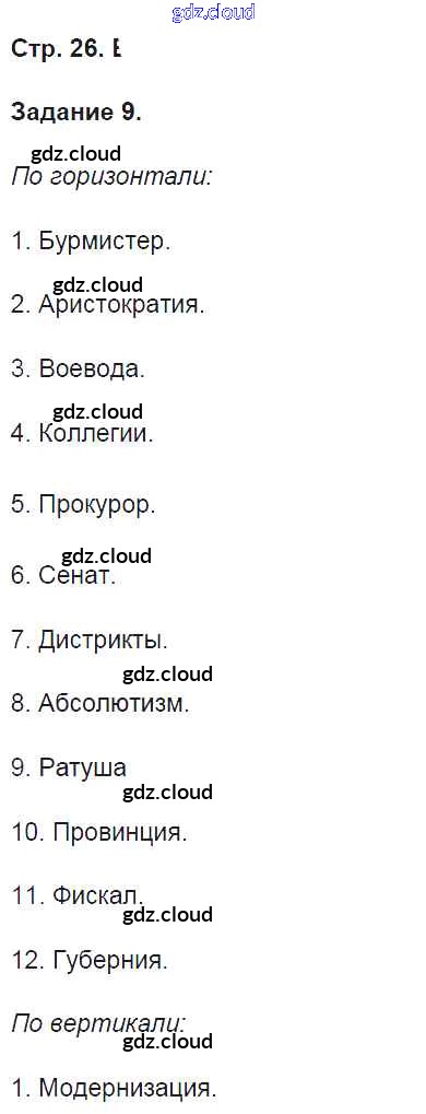 Ответ на задание стр.26 Рабочая тетрадь История за 8 (восьмой) класс Чернова УМК 2017 Часть 1, 2 ФГОС онлайн и без номера телефона.