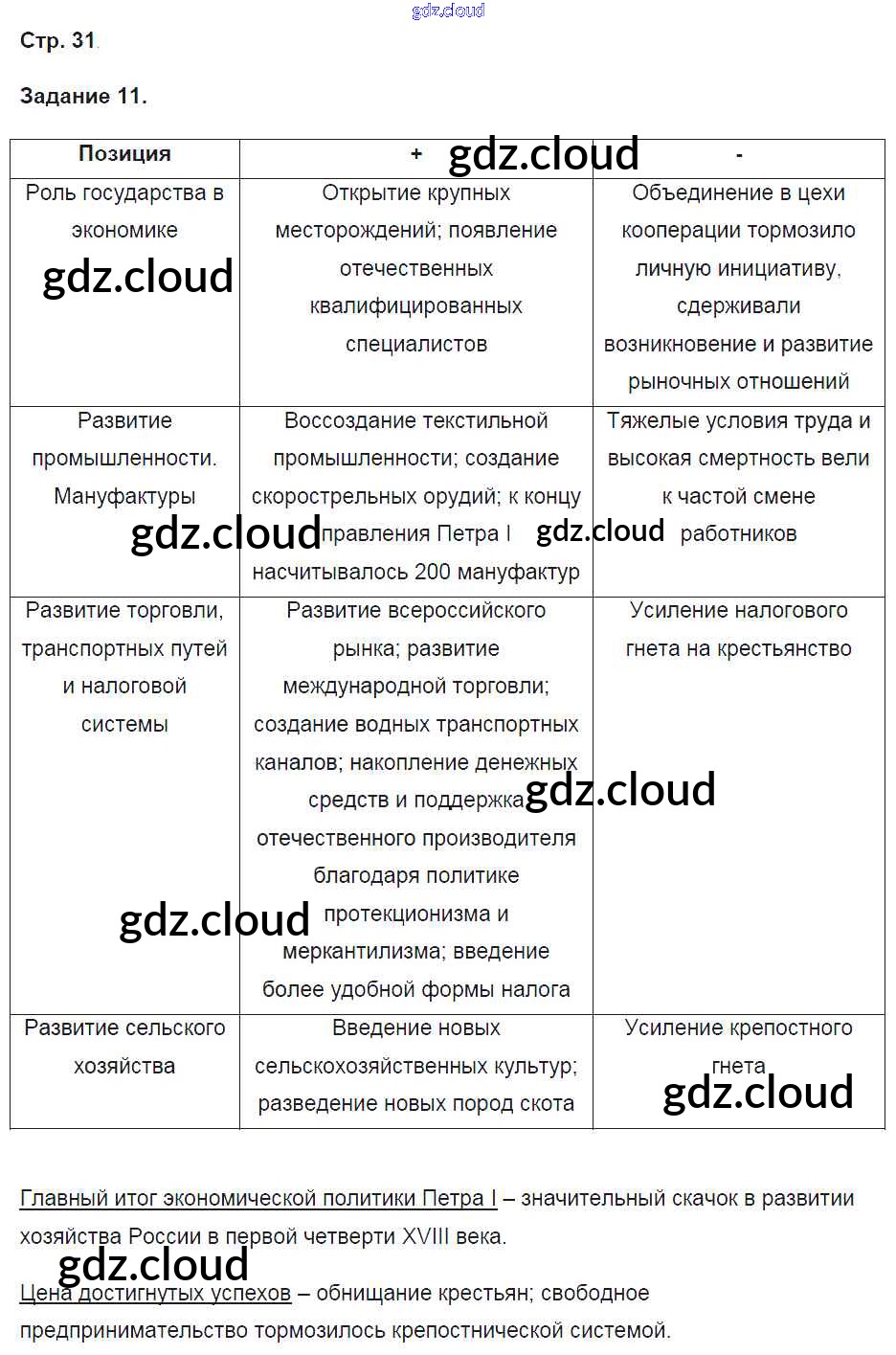Ответ на задание стр.31 Рабочая тетрадь История за 8 (восьмой) класс Чернова УМК 2017 Часть 1, 2 ФГОС онлайн и без номера телефона.