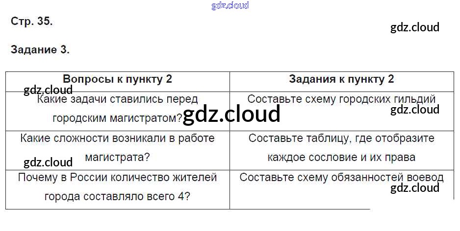Ответ на задание стр.35 Рабочая тетрадь История за 8 (восьмой) класс Чернова УМК 2017 Часть 1, 2 ФГОС онлайн и без номера телефона.