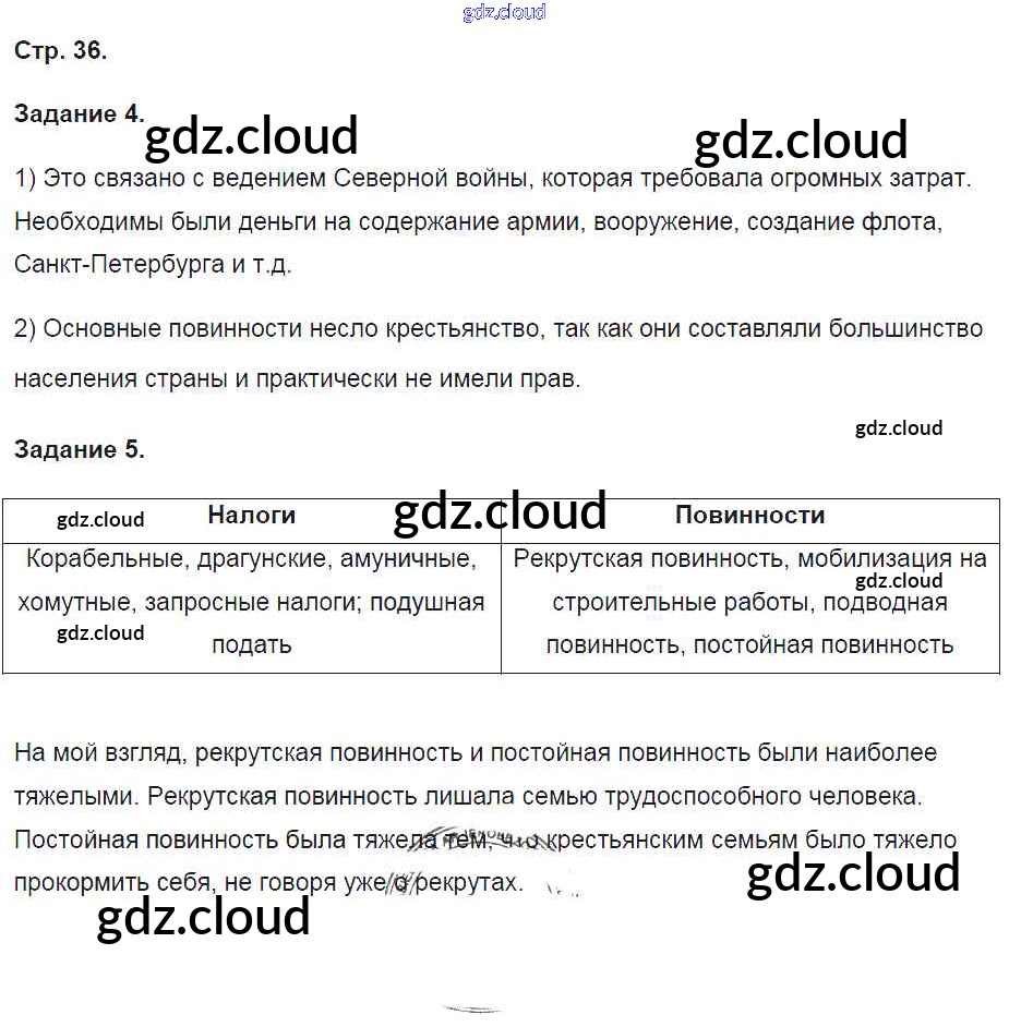 Ответ на задание стр.36 Рабочая тетрадь История за 8 (восьмой) класс Чернова УМК 2017 Часть 1, 2 ФГОС онлайн и без номера телефона.