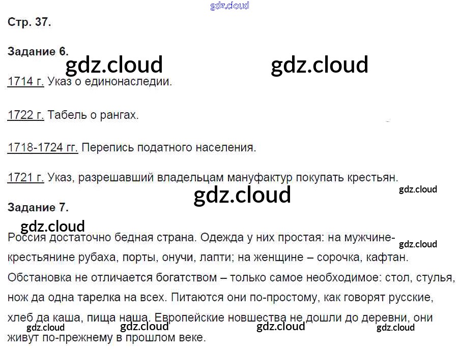 Ответ на задание стр.37 Рабочая тетрадь История за 8 (восьмой) класс Чернова УМК 2017 Часть 1, 2 ФГОС онлайн и без номера телефона.