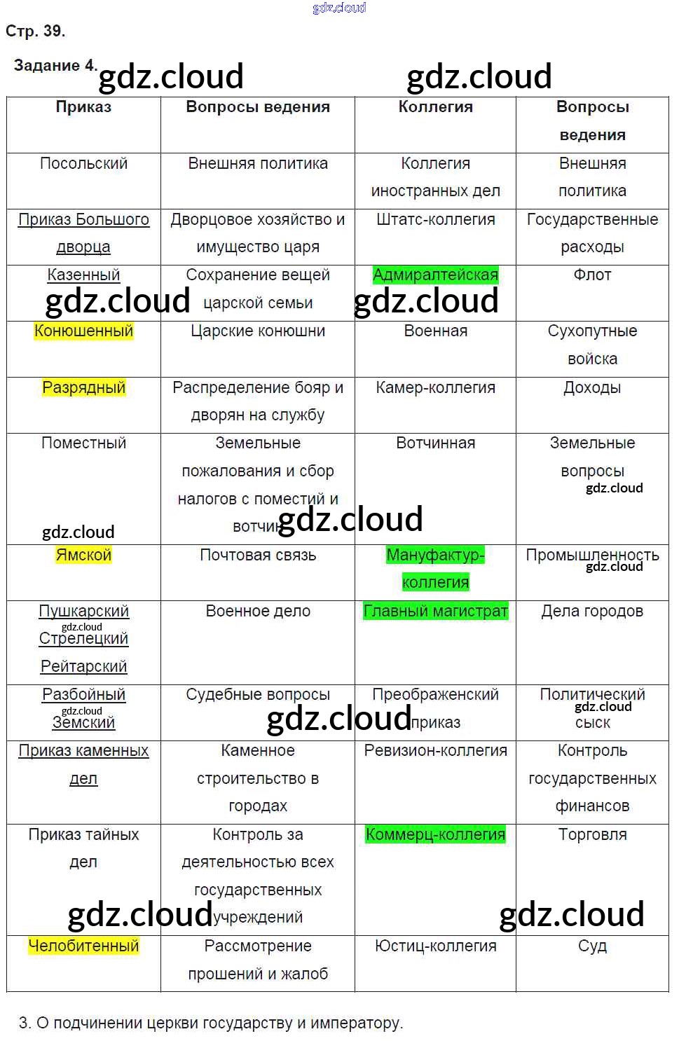 Ответ на задание стр.39 Рабочая тетрадь История за 8 (восьмой) класс Чернова УМК 2017 Часть 1, 2 ФГОС онлайн и без номера телефона.