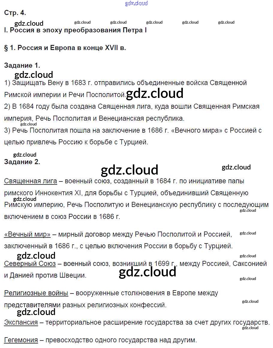 Ответ на задание стр.4 Рабочая тетрадь История за 8 (восьмой) класс Чернова УМК 2017 Часть 1, 2 ФГОС онлайн и без номера телефона.