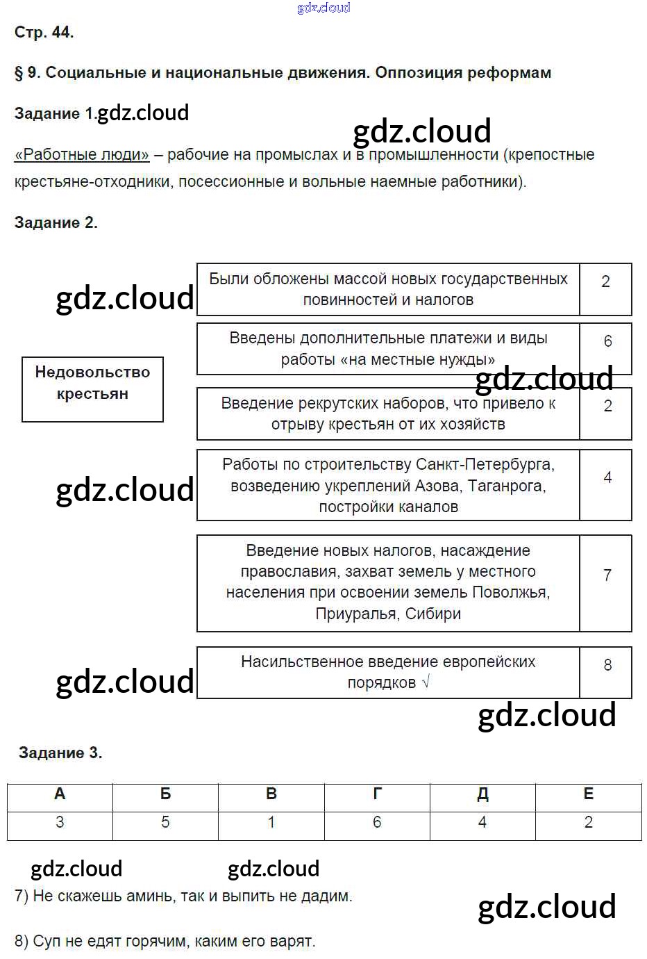 Ответ на задание стр.44 Рабочая тетрадь История за 8 (восьмой) класс Чернова УМК 2017 Часть 1, 2 ФГОС онлайн и без номера телефона.