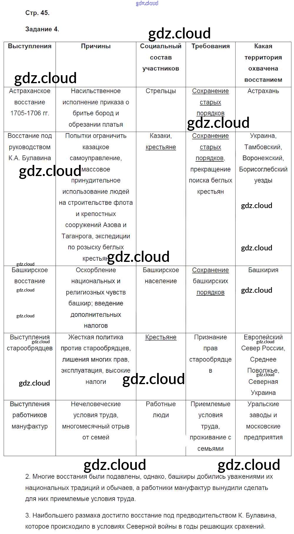 Ответ на задание стр.45 Рабочая тетрадь История за 8 (восьмой) класс Чернова УМК 2017 Часть 1, 2 ФГОС онлайн и без номера телефона.