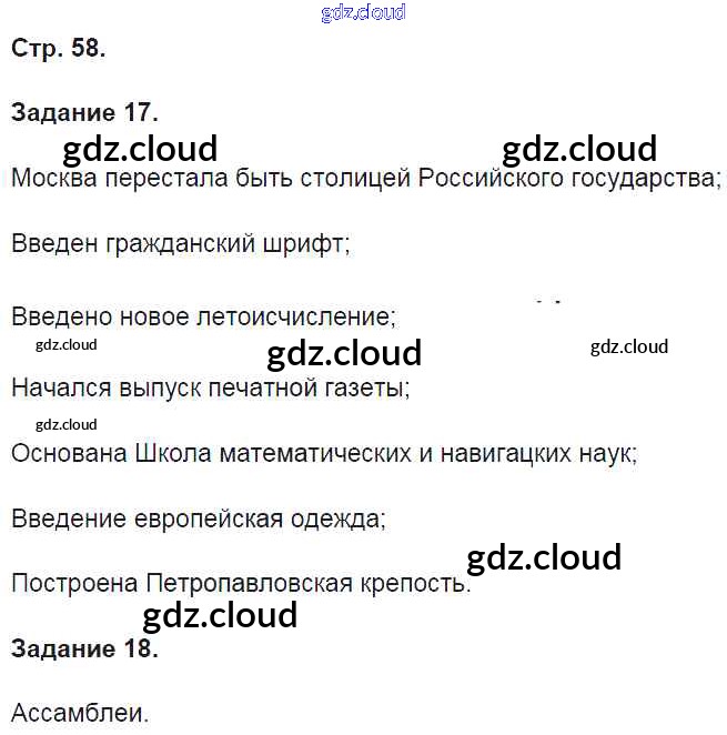 Ответ на задание стр.58 Рабочая тетрадь История за 8 (восьмой) класс Чернова УМК 2017 Часть 1, 2 ФГОС онлайн и без номера телефона.