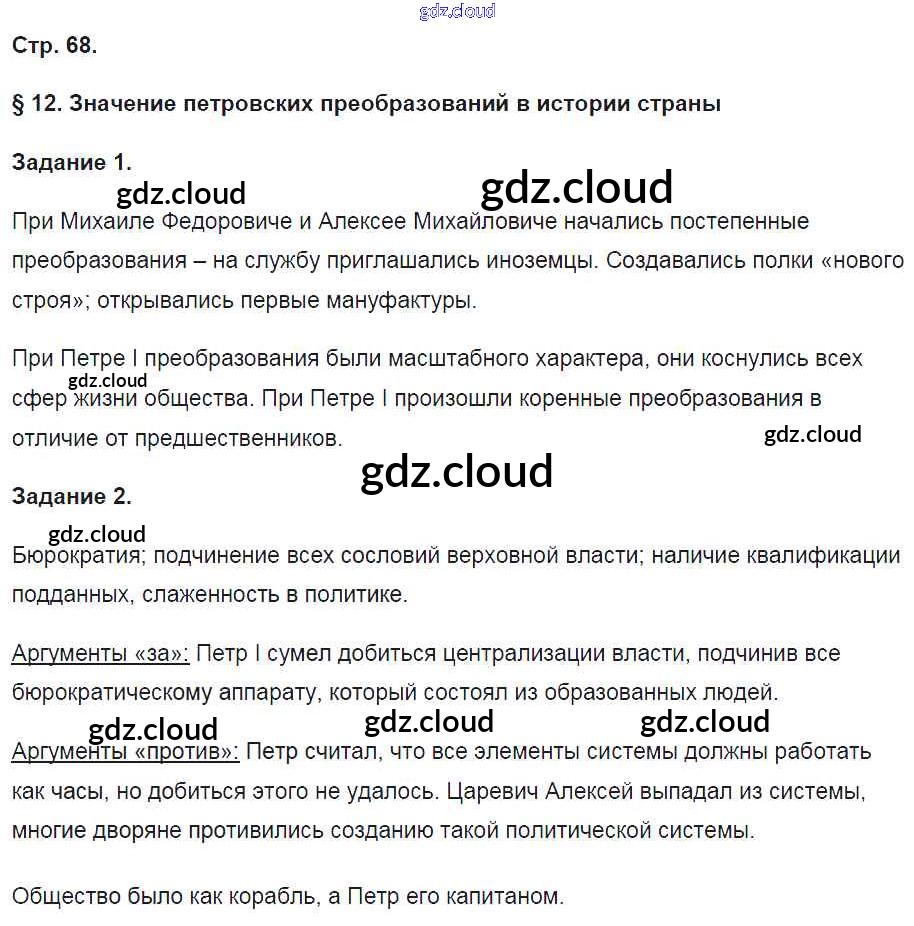 Ответ на задание стр.68 Рабочая тетрадь История за 8 (восьмой) класс Чернова УМК 2017 Часть 1, 2 ФГОС онлайн и без номера телефона.