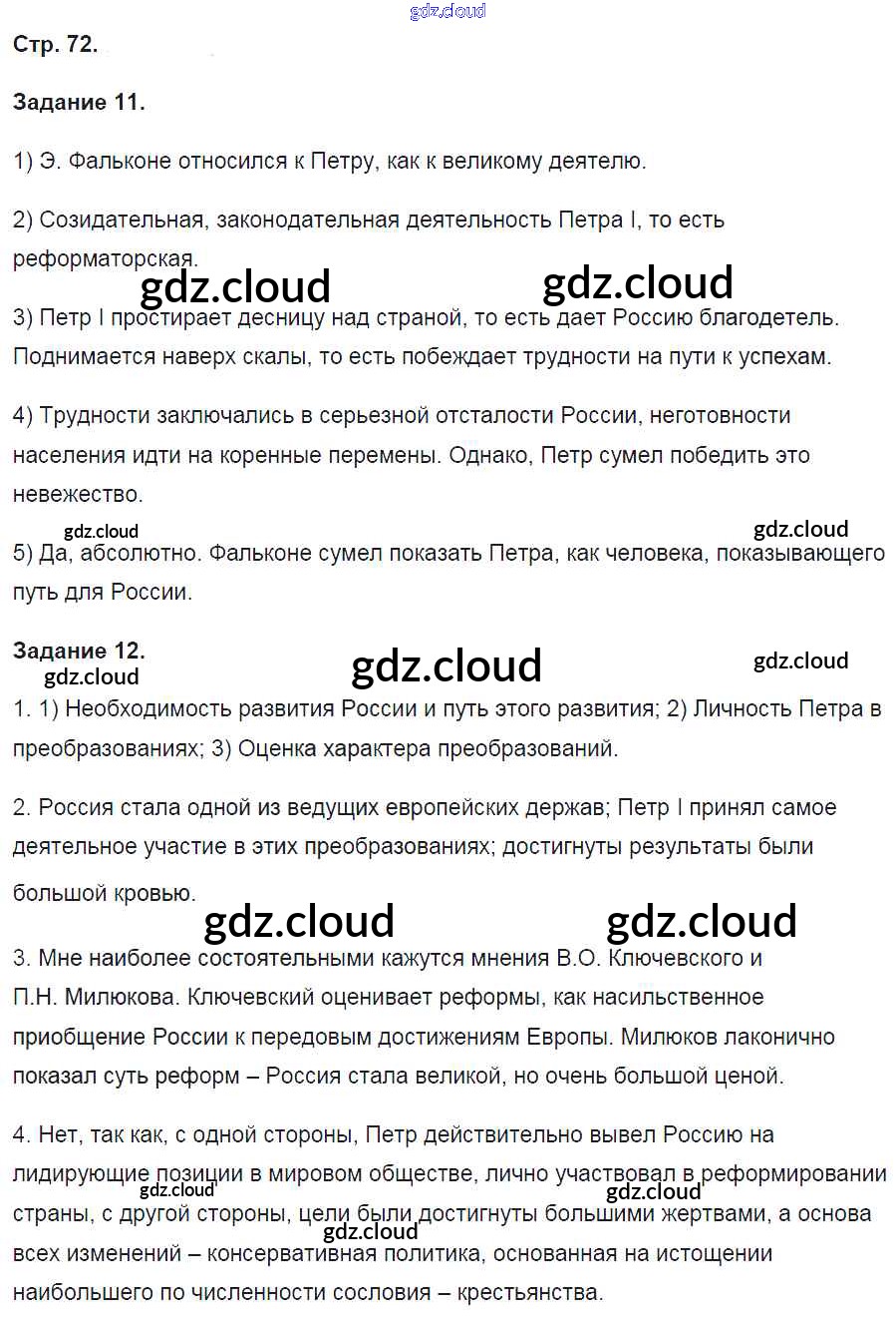 Ответ на задание стр.72 Рабочая тетрадь История за 8 (восьмой) класс Чернова УМК 2017 Часть 1, 2 ФГОС онлайн и без номера телефона.