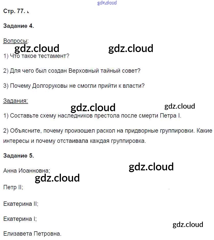 Ответ на задание стр.77 Рабочая тетрадь История за 8 (восьмой) класс Чернова УМК 2017 Часть 1, 2 ФГОС онлайн и без номера телефона.