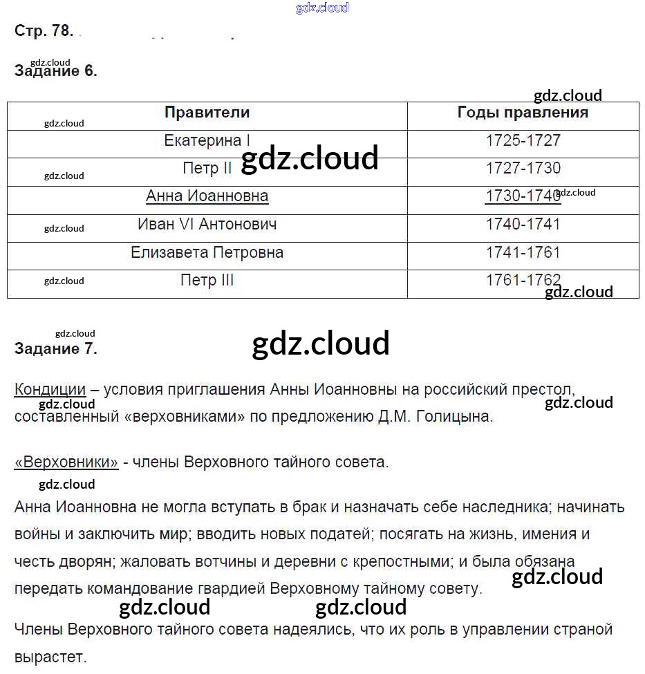 Ответ на задание стр.78 Рабочая тетрадь История за 8 (восьмой) класс Чернова УМК 2017 Часть 1, 2 ФГОС онлайн и без номера телефона.