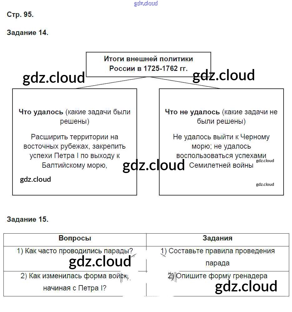 Ответ на задание стр.95 Рабочая тетрадь История за 8 (восьмой) класс Чернова УМК 2017 Часть 1, 2 ФГОС онлайн и без номера телефона.