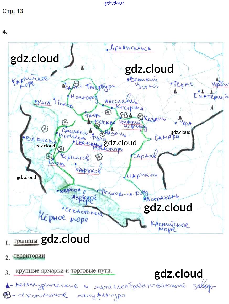Ответ на задание стр.13 Рабочая тетрадь История за 8 (восьмой) класс Чернова УМК 2017 Часть 1, 2 ФГОС онлайн и без номера телефона.
