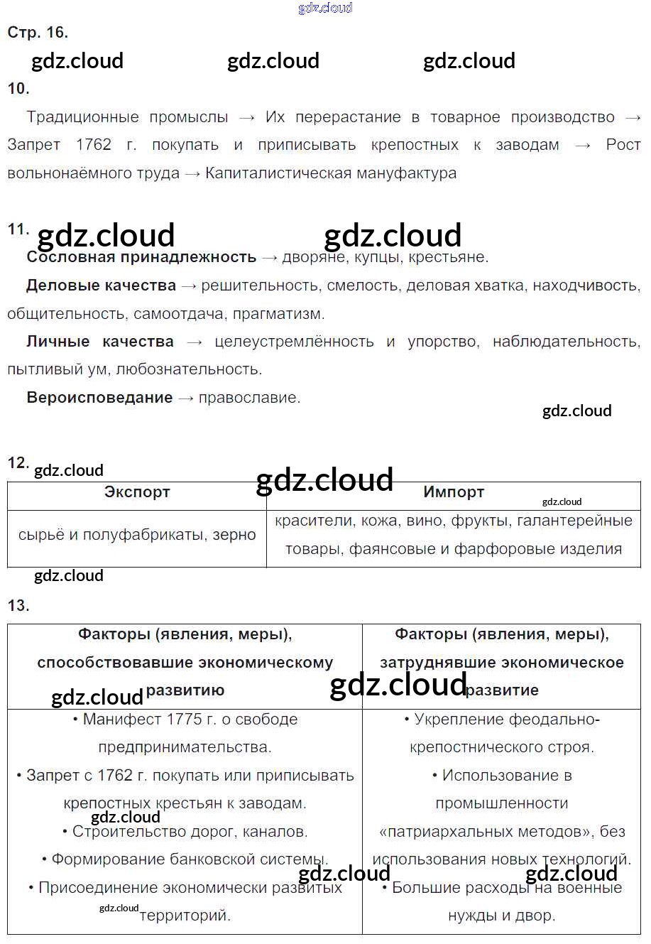 Ответ на задание стр.16 Рабочая тетрадь История за 8 (восьмой) класс Чернова УМК 2017 Часть 1, 2 ФГОС онлайн и без номера телефона.