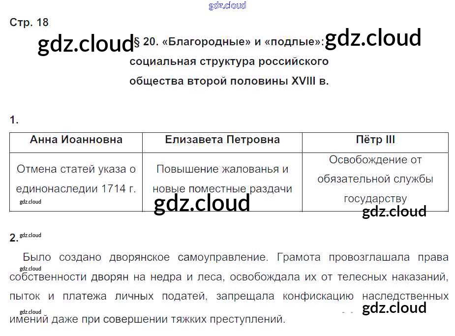 Ответ на задание стр.18 Рабочая тетрадь История за 8 (восьмой) класс Чернова УМК 2017 Часть 1, 2 ФГОС онлайн и без номера телефона.