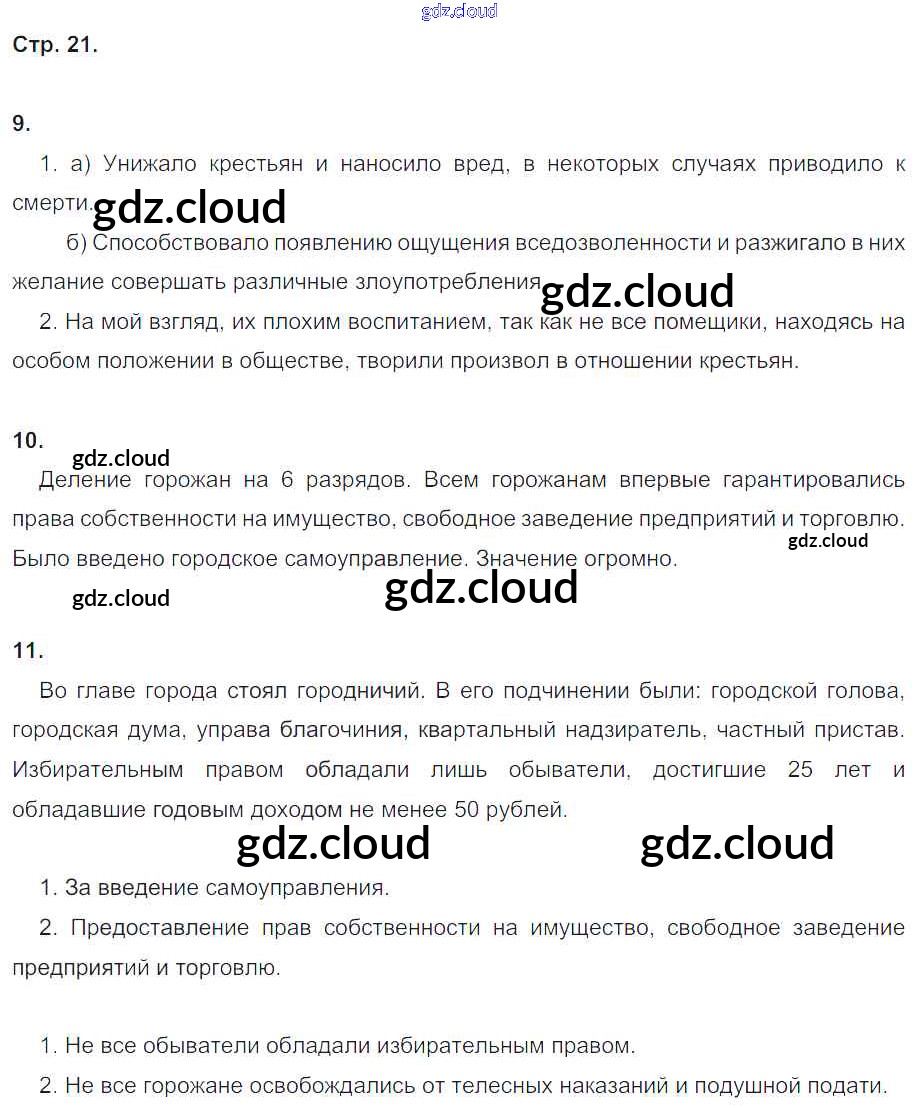 Ответ на задание стр.21 Рабочая тетрадь История за 8 (восьмой) класс Чернова УМК 2017 Часть 1, 2 ФГОС онлайн и без номера телефона.