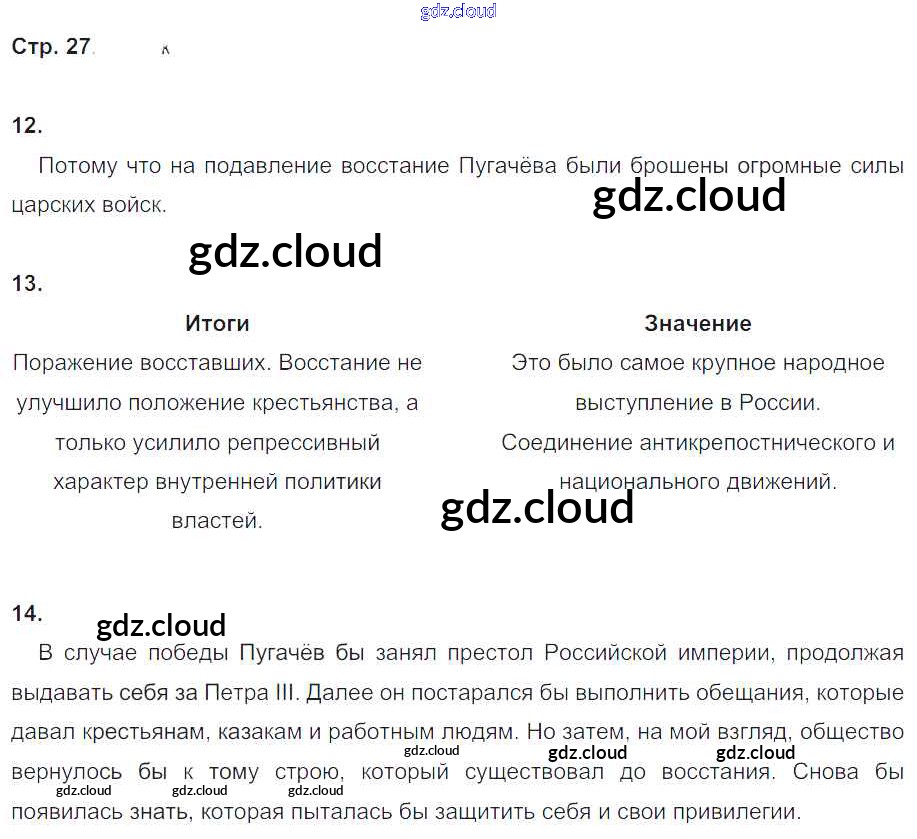 Ответ на задание стр.27 Рабочая тетрадь История за 8 (восьмой) класс Чернова УМК 2017 Часть 1, 2 ФГОС онлайн и без номера телефона.