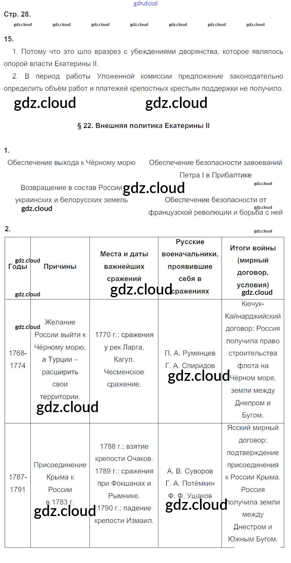 Ответ на задание стр.28 Рабочая тетрадь История за 8 (восьмой) класс Чернова УМК 2017 Часть 1, 2 ФГОС онлайн и без номера телефона.