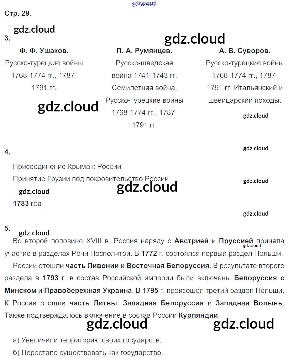 Ответ на задание стр.29 Рабочая тетрадь История за 8 (восьмой) класс Чернова УМК 2017 Часть 1, 2 ФГОС онлайн и без номера телефона.