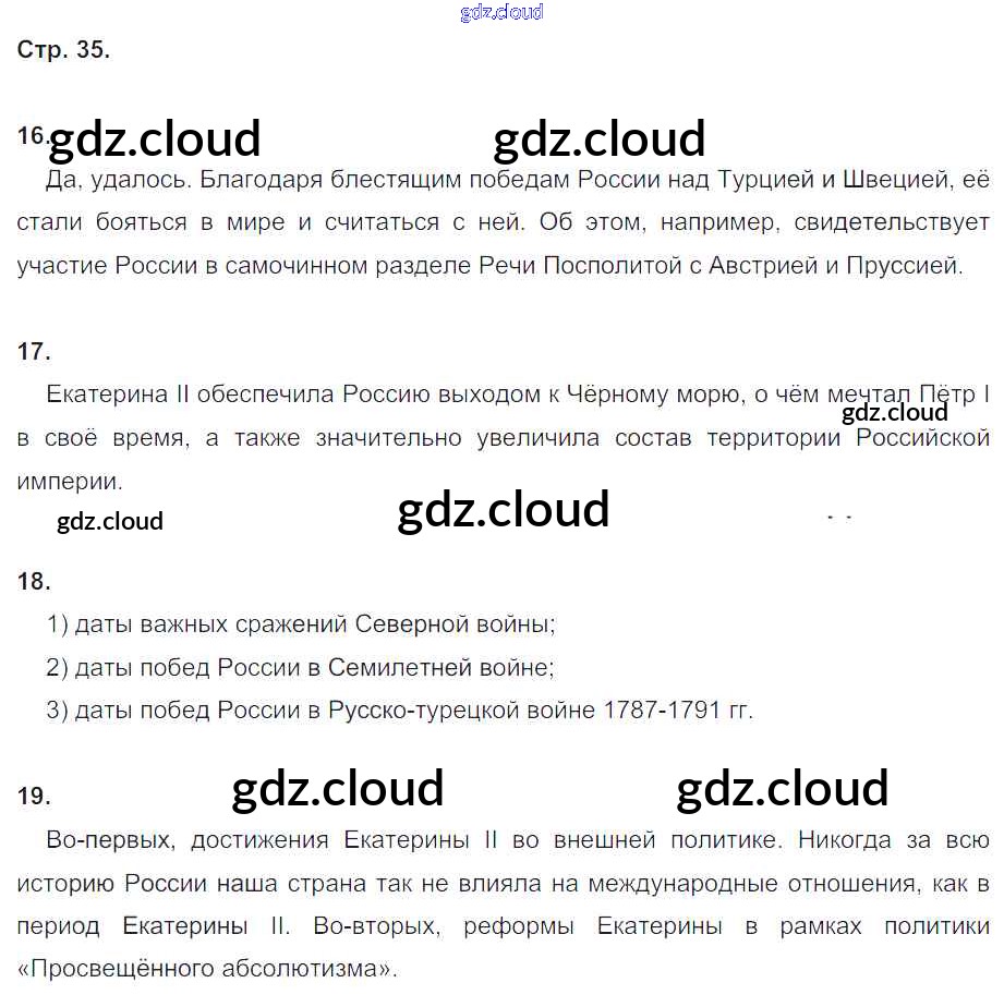 Ответ на задание стр.35 Рабочая тетрадь История за 8 (восьмой) класс Чернова УМК 2017 Часть 1, 2 ФГОС онлайн и без номера телефона.