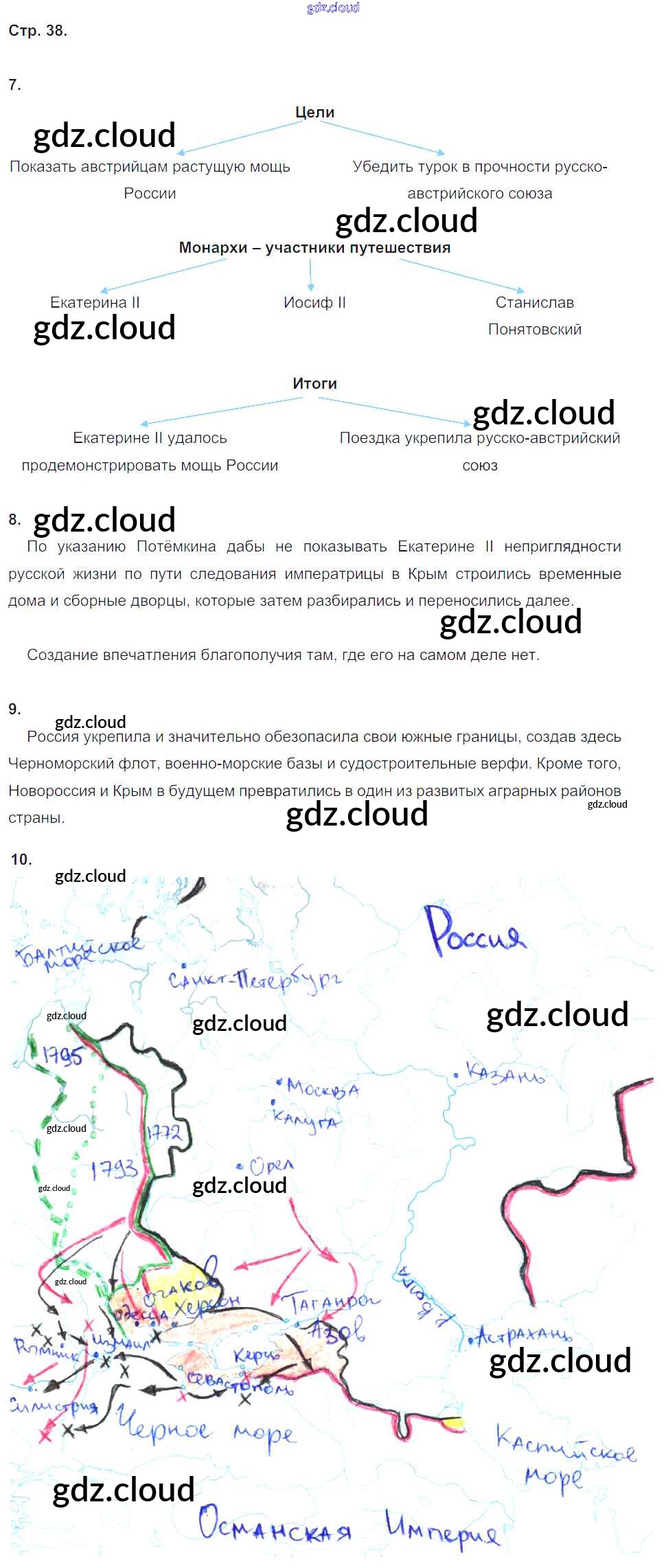 Ответ на задание стр.38 Рабочая тетрадь История за 8 (восьмой) класс Чернова УМК 2017 Часть 1, 2 ФГОС онлайн и без номера телефона.