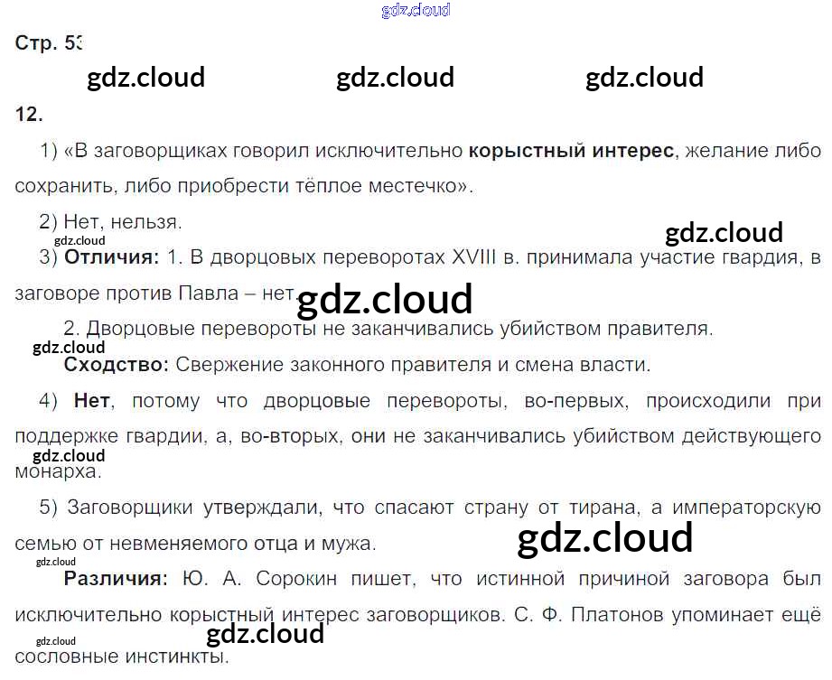 Ответ на задание стр.53 Рабочая тетрадь История за 8 (восьмой) класс Чернова УМК 2017 Часть 1, 2 ФГОС онлайн и без номера телефона.