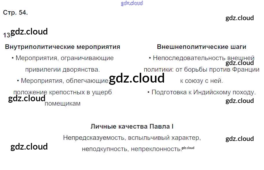 Ответ на задание стр.54 Рабочая тетрадь История за 8 (восьмой) класс Чернова УМК 2017 Часть 1, 2 ФГОС онлайн и без номера телефона.