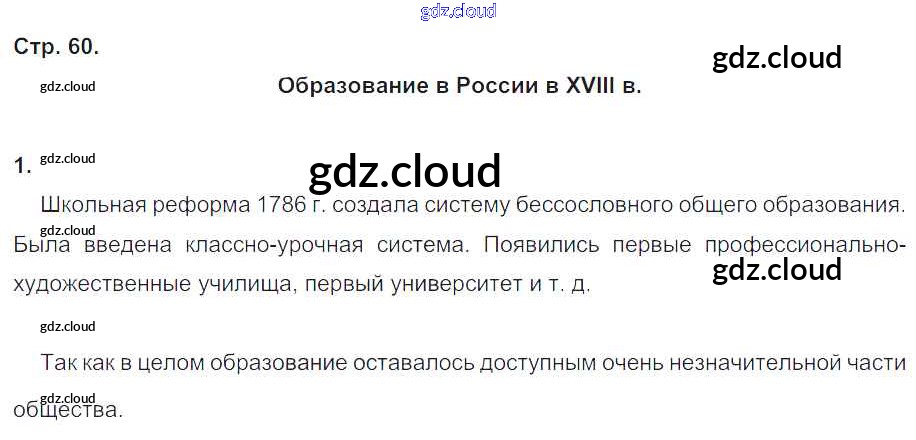 Ответ на задание стр.60 Рабочая тетрадь История за 8 (восьмой) класс Чернова УМК 2017 Часть 1, 2 ФГОС онлайн и без номера телефона.