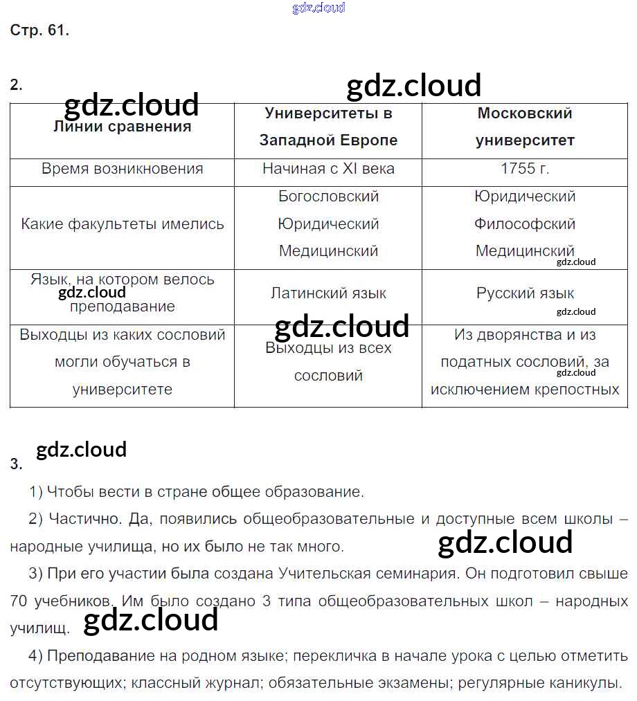 Ответ на задание стр.61 Рабочая тетрадь История за 8 (восьмой) класс Чернова УМК 2017 Часть 1, 2 ФГОС онлайн и без номера телефона.